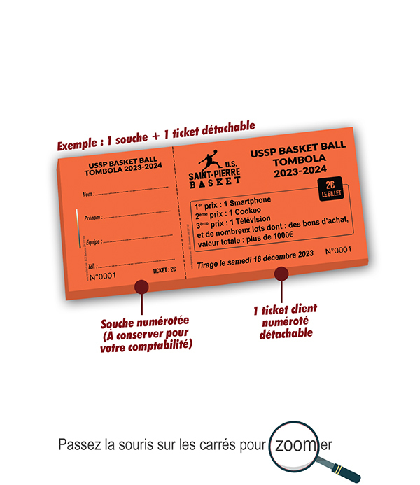 Numérotation sur la souche et le volet détachable (à partir du N° 0001 ou de votre propre numéro de départ)