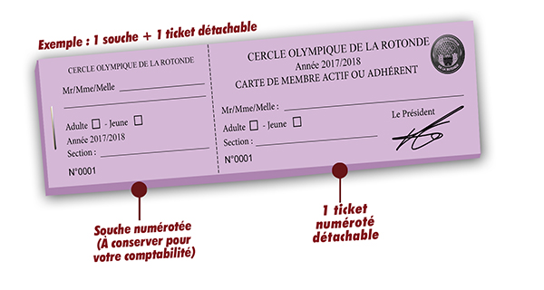 Hauteur 7cm Largeur 15cm (souche + 1 volet détachable prédécoupé) Impression noir / 1 face Papier...